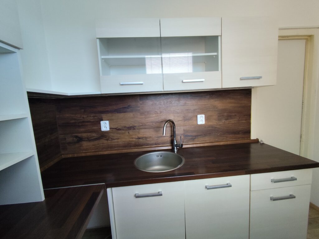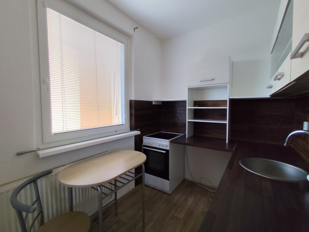 Byt je v původním, ale velmi zachovalém stavu, který umožňuje přestavbu dle vlastních představ nebo po drobném zvelebení okamžité nastěhování. Byt se skládá z předsíně, koupelny, obytného pokoje a samostatné kuchyně. Kuchyň je vybavena kuchyňskou linkou, sporákem a jídelním stolkem. Koupelna je zděná a disponuje sprchovým koutem, umyvadlem a wc. V předsíni najdeme vestavěnou skříň. Pokoj je nezařízený, průchozí do kuchyně, avšak je možné zpřístupnit vchod z předsíně. Okna plastová se žaluziemi, podlahy kryjí PVC, vytápění a zdroj teplé vody dálkové. K bytu náleží sklepní kóje, společná kolárna, sušárna, kočárkárna. Parkování na přilehlých sídlištních parkovištích.